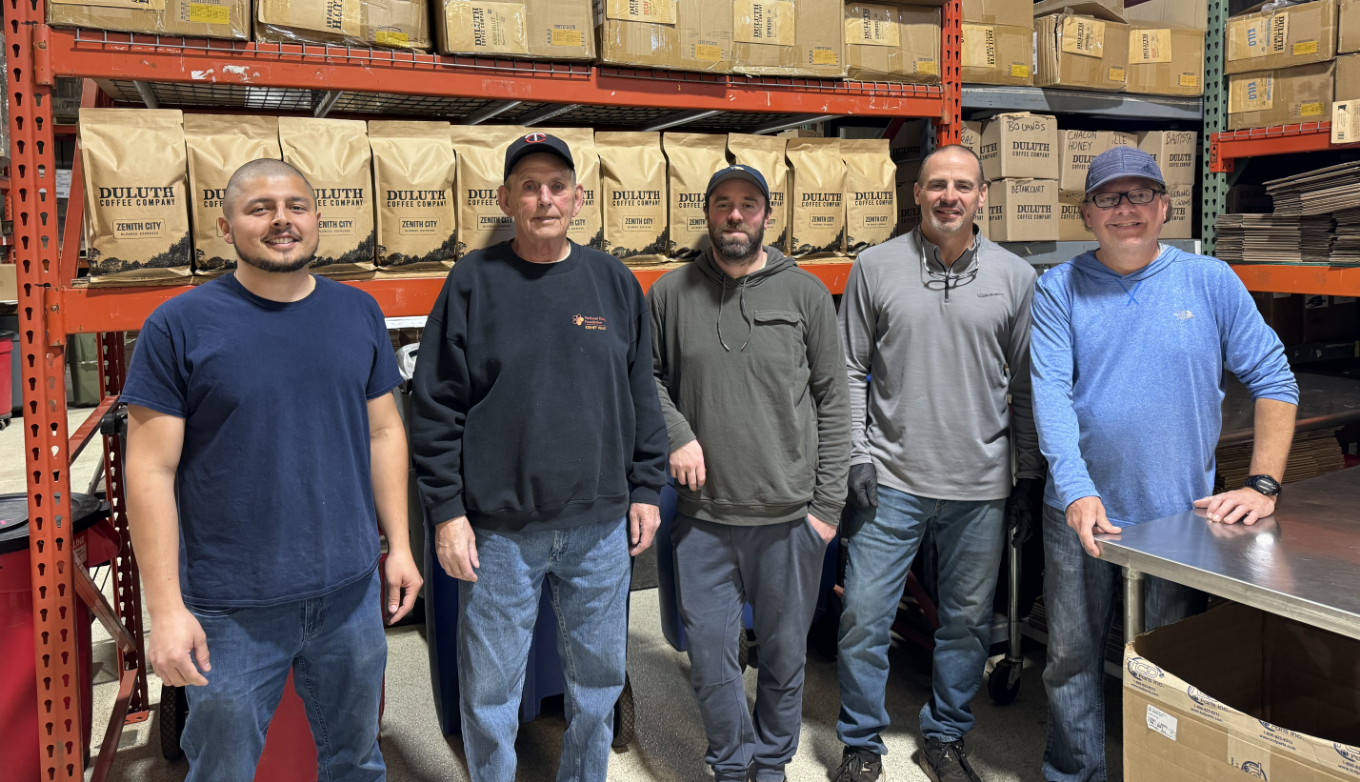 Paul Laskowski and Eric Faust crossed paths in 2016 when Eric asked Paul to help him in his goal of selling bags of his Duluth Coffee Beans into local grocery stores. That relationship blended into a business relationship that has taken the brand of Duluth Coffee to the next level. With the strong leadership and dedication from Mark Laskowski and Samuel Levar the four have expanded the roastery in Downtown Duluth and updated the production/distribution facility within Twin Ports Paper. Today Duluth Coffee is growing in hundreds of retail locations and coffee shops in the upper Midwest.
